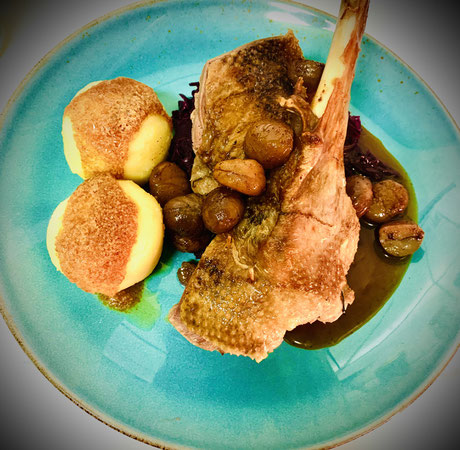 Ab November gibt es bei uns wieder Martinsgans. Klassisch mit Rotkraut, Knödel und Maronen.